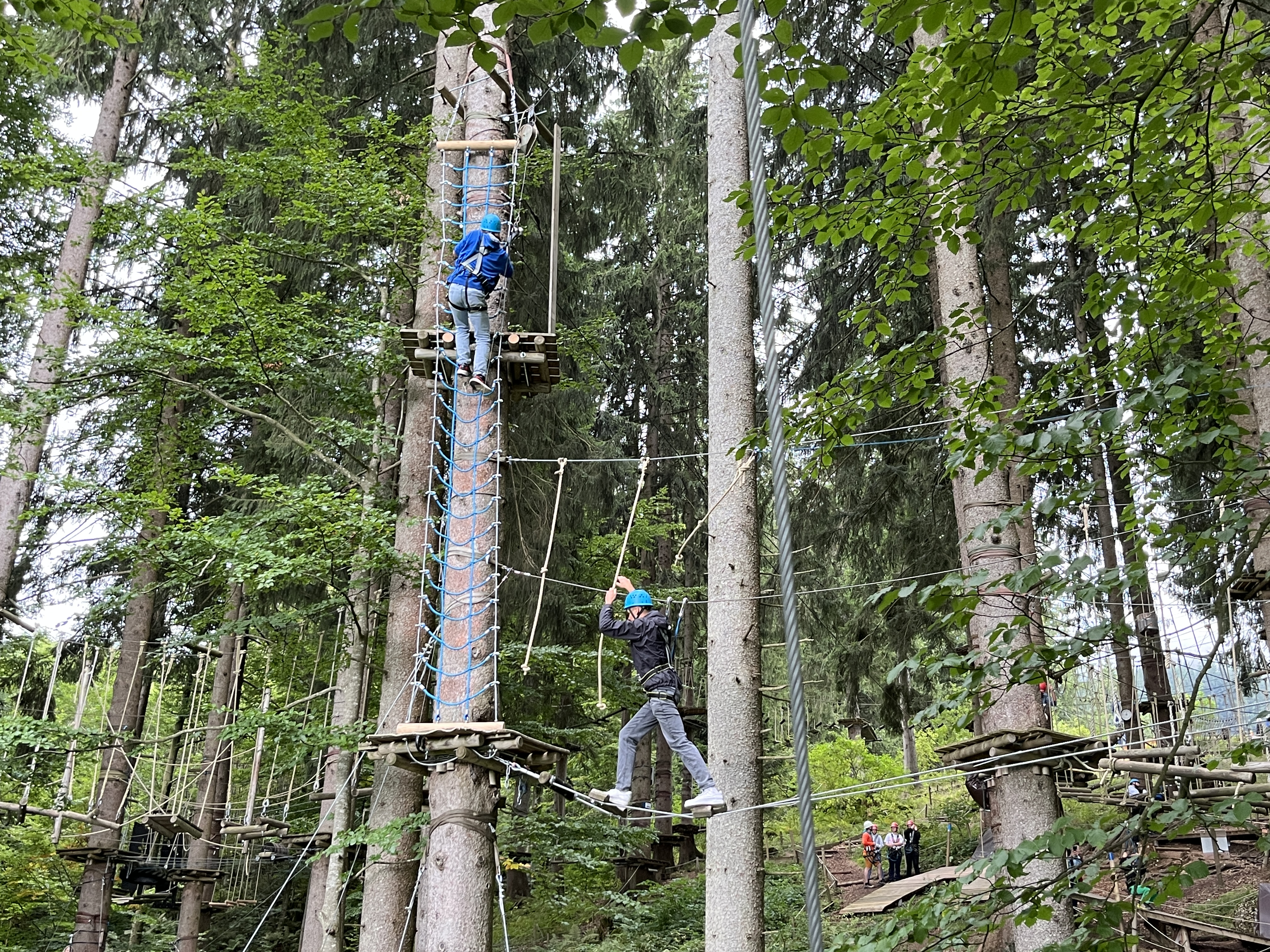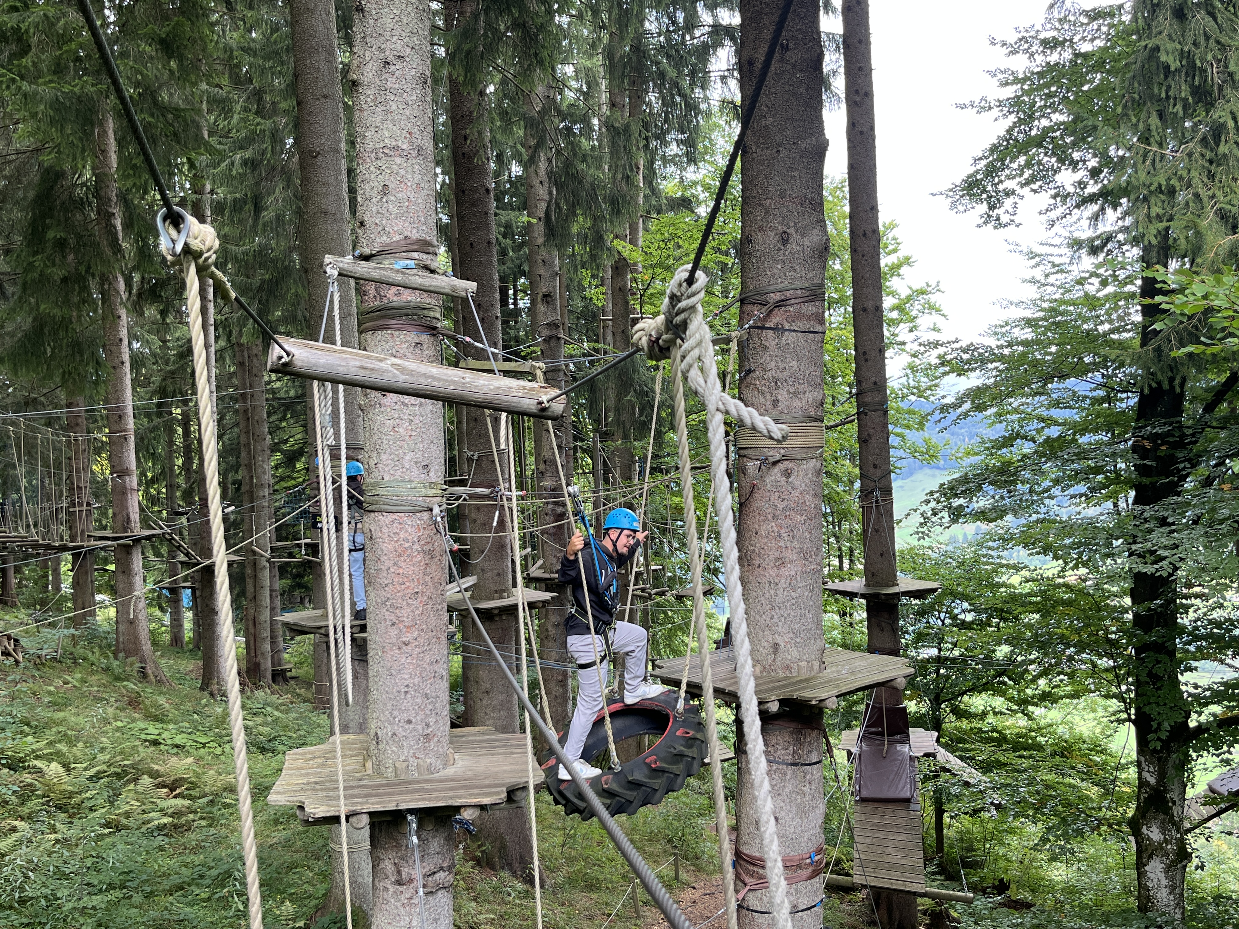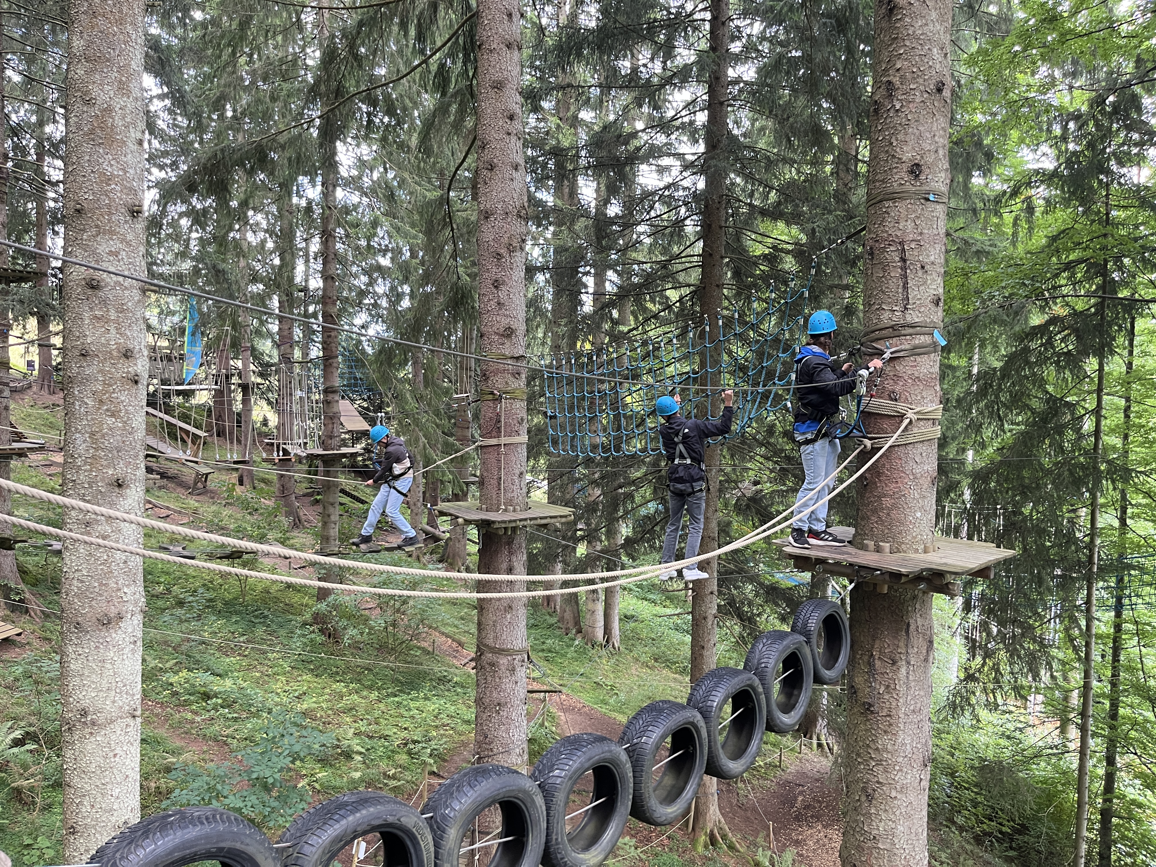 Schon die Auffahrt mit der Seilbahn sorgte für Vorfreude. Oben angekommen erhielt die Gruppe eine kurze Einweisung, bevor es auf die verschiedenen Parcours ging. Mit unterschiedlichen Schwierigkeitsgraden war für jeden etwas dabei – von Einsteiger bis hin zu echten Kletterprofis. Dabei standen nicht nur Mut und Geschicklichkeit im Vordergrund, sondern auch gegenseitige Unterstützung und Teamgeist.