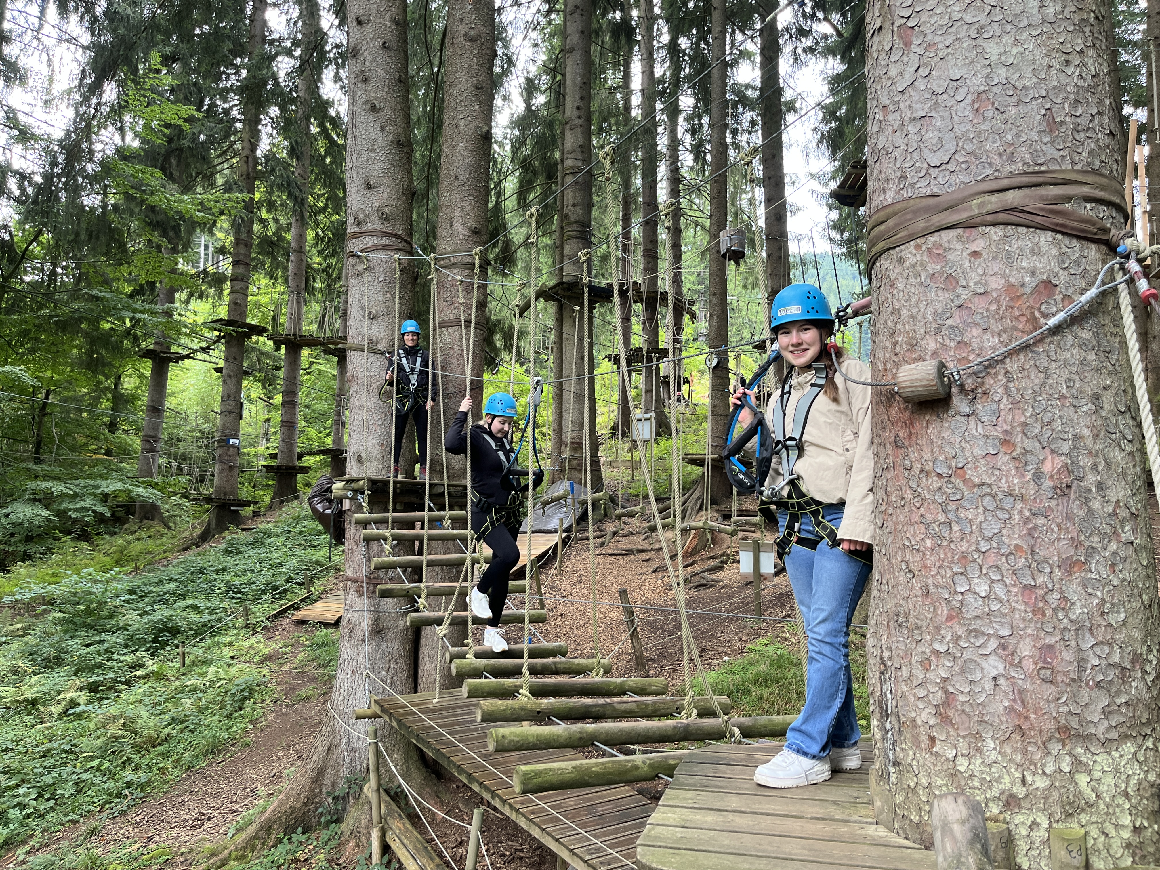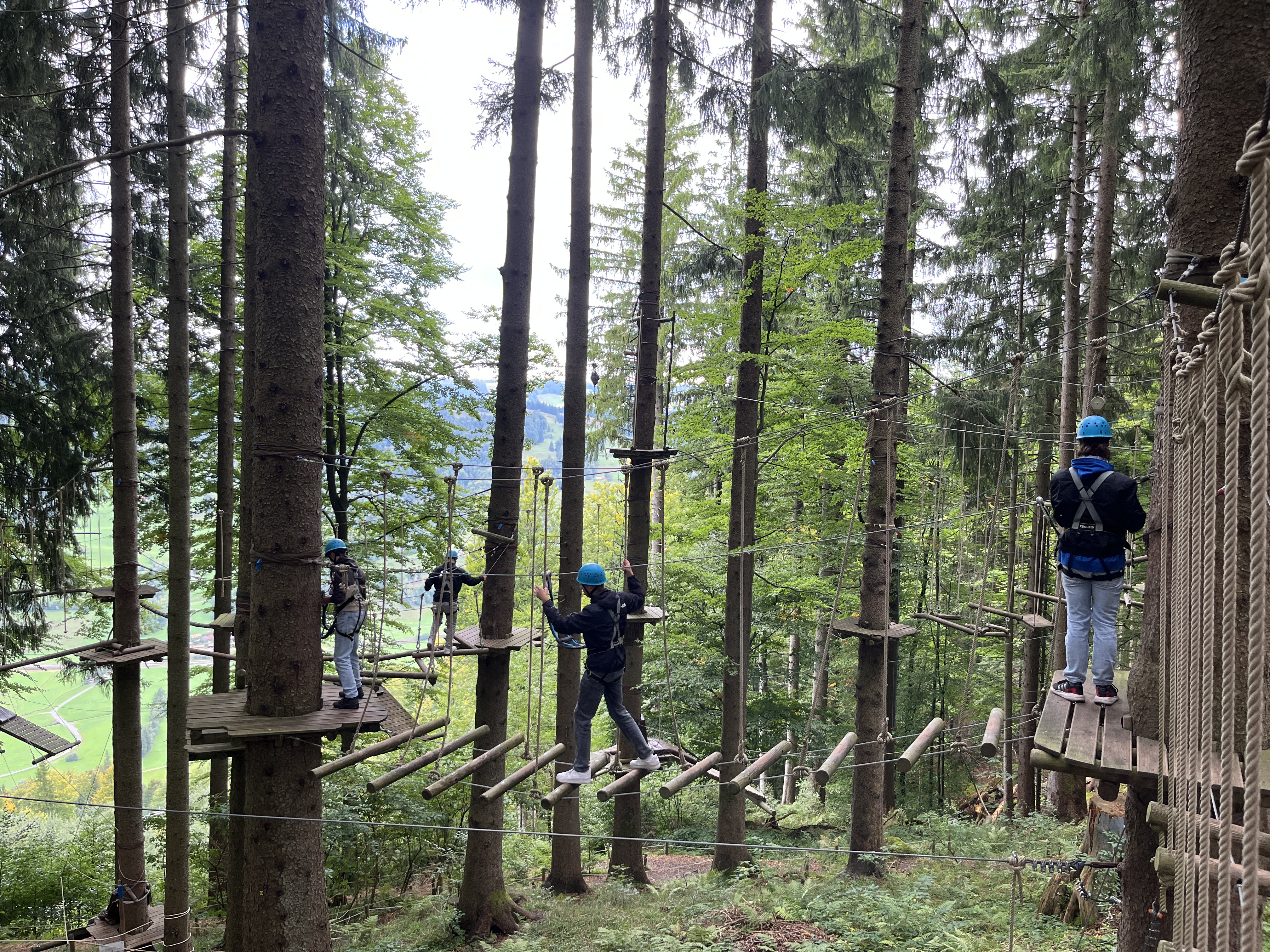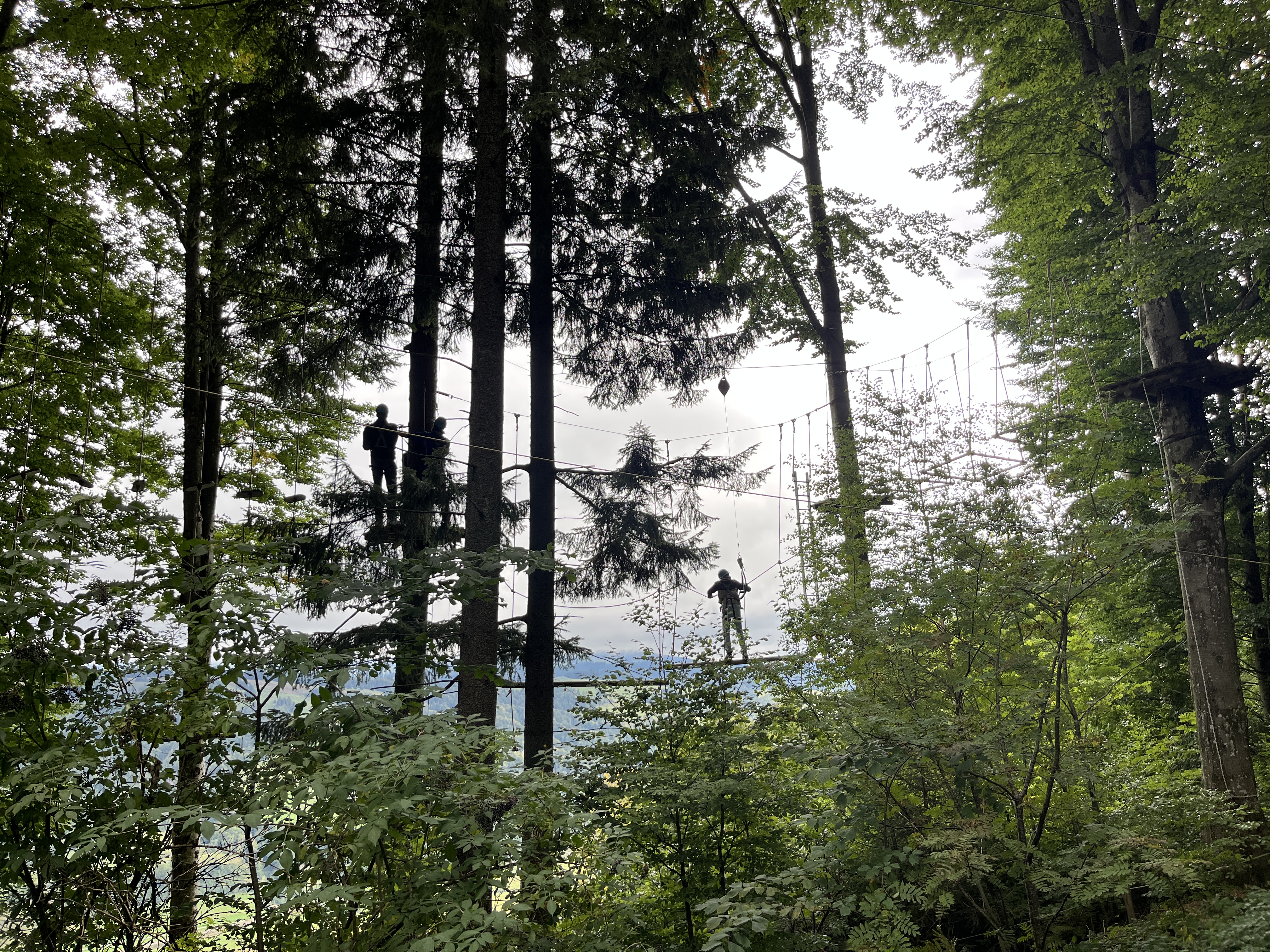 Schon die Auffahrt mit der Seilbahn sorgte für Vorfreude. Oben angekommen erhielt die Gruppe eine kurze Einweisung, bevor es auf die verschiedenen Parcours ging. Mit unterschiedlichen Schwierigkeitsgraden war für jeden etwas dabei – von Einsteiger bis hin zu echten Kletterprofis. Dabei standen nicht nur Mut und Geschicklichkeit im Vordergrund, sondern auch gegenseitige Unterstützung und Teamgeist.