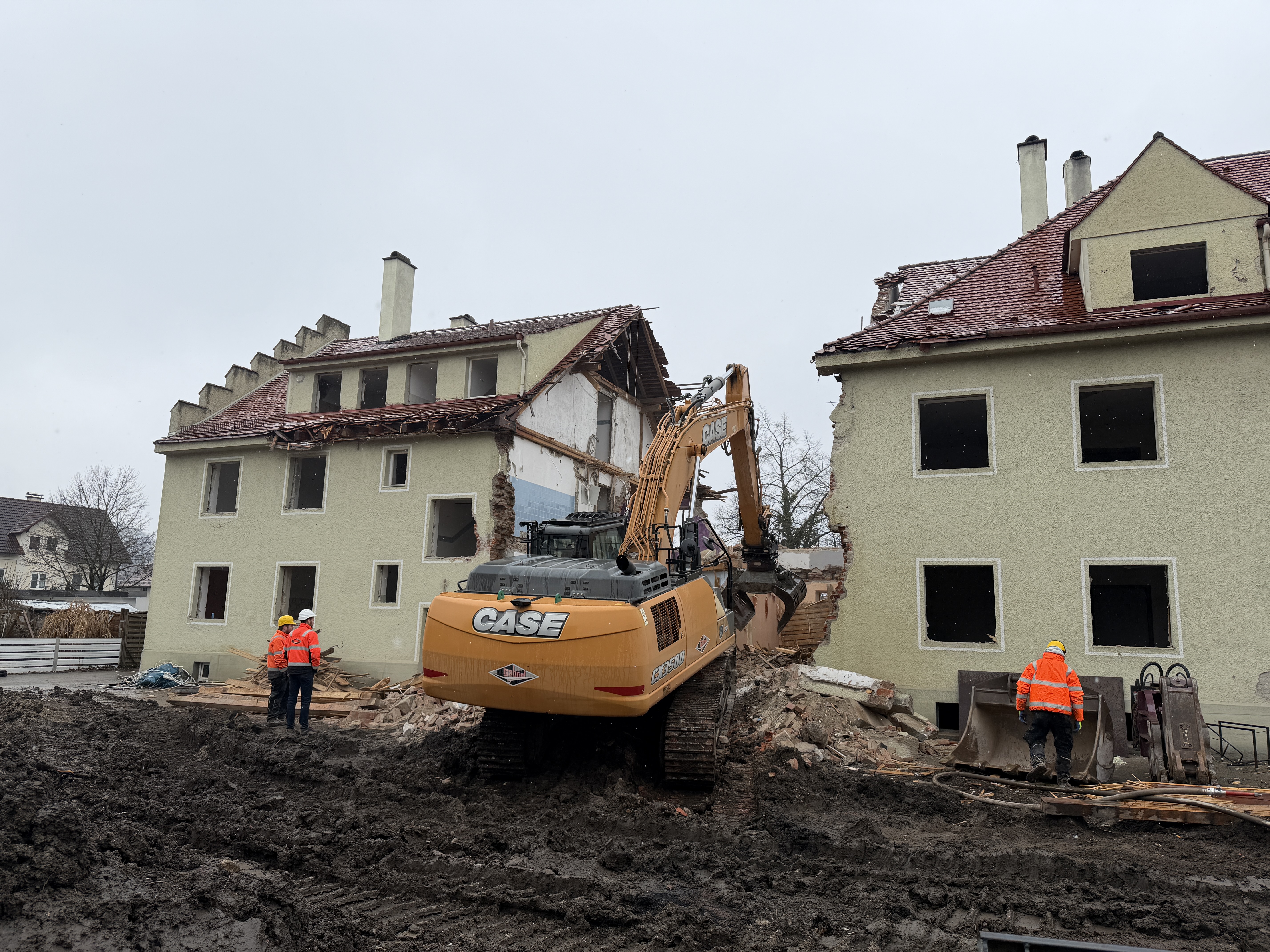 Am 12.02.2026 hat in der Krankenhausstraße 2-6 in Mindelheim der Rückbau eines historischen Gebäudes aus dem Bestand der Wohnungsgenossenschaft Mindelheim eG begonnen. Die Firma Gabriel startete mit den Abbrucharbeiten.