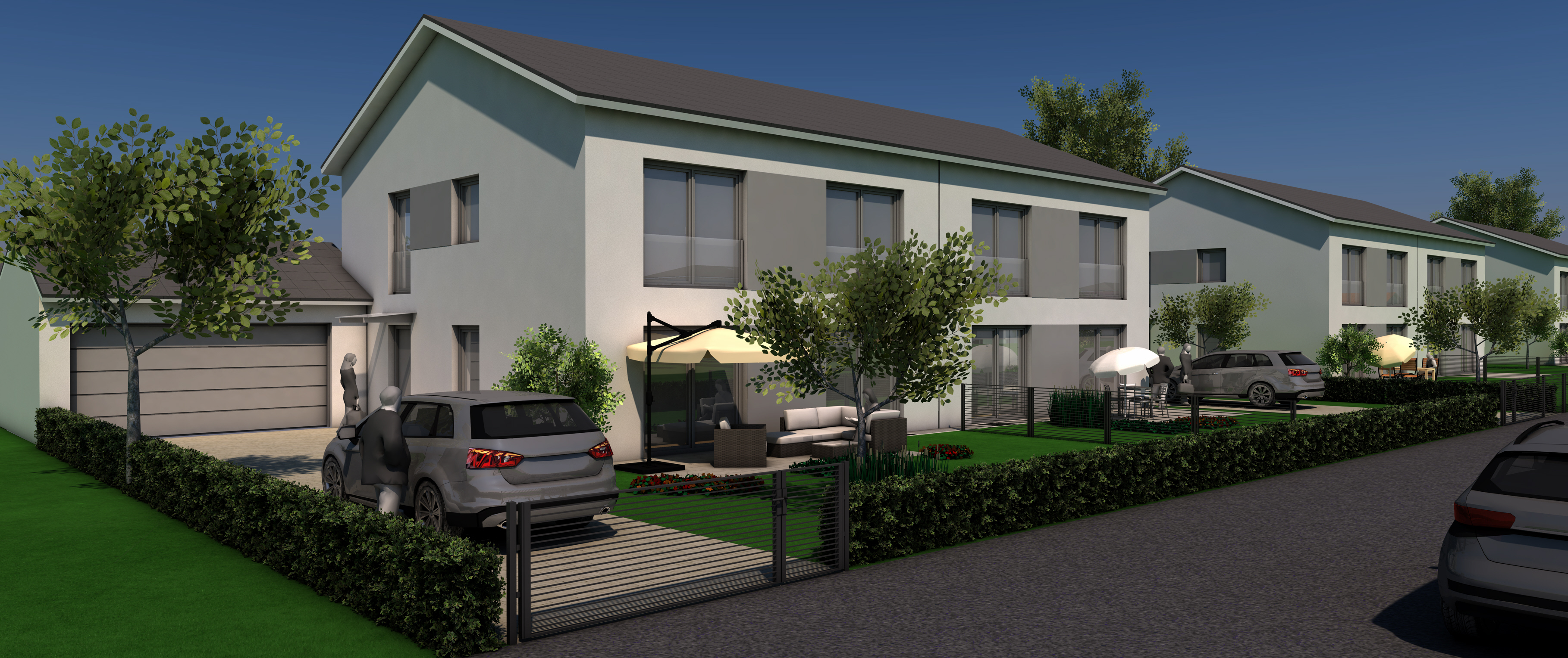 Entlang der Kloster-Heilig-Kreuz-Straße 3 -13 entstehen sechs moderne Doppelhaushälften. Das klimafreundliche Wohngebäude wird ein KfW-Effizienzhaus Stufe 40 mit QNG. Hier fördert die KfW-Förderbank Ihre Investition und begünstigt Sie bei Ihrem Kredit mit niedrigen Zinsen.